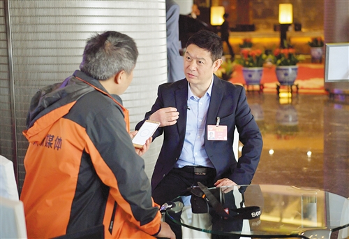 3月9日,全国政协民建界别举行小组会议。会后,全国政协委员武义青(右)认为,京津冀三地应加速推进共建共享。记者高兴贵 摄