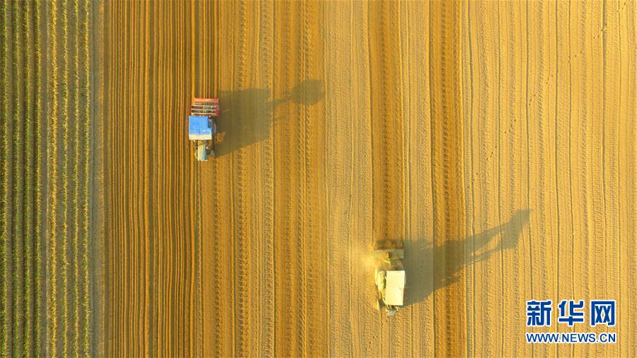 3月14日,在山东省聊城市茌平县贾寨镇冯庄村,村民驾驶农机整理土地,准备栽种甘蓝(无人机拍摄)。新华社发(赵玉国 摄)
