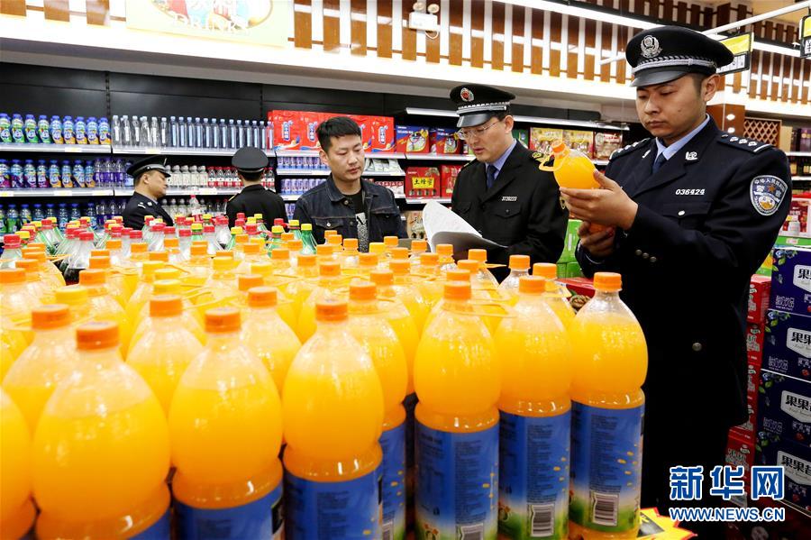 3月14日,执法人员在山东省枣庄市市中区一家超市检查销售的商品。“3·15”国际消费者权益日来临之际,各地举办形式多样的活动,维护消费者合法权益,提高人们的消费安全意识。新华社发(孙中喆 摄)