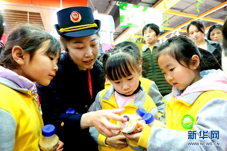 3月14日,江西省吉安市峡江县市场监督管理局工作人员在“大手牵小手 安全消费伴我走”活动中为幼儿园小朋友讲解食品安全常识。“3·15”国际消费者权益日来临之际,各地举办形式多样的活动,维护消费者合法权益,提高人们的消费安全意识。新华社发(曾双全 摄)