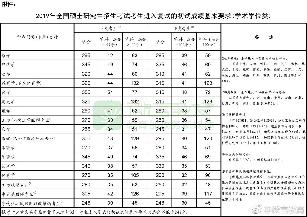 据教育部网站消息,今日,教育部公布《2019年全国硕士研究生招生考试考生进入复试的初试成绩基本要求》(国家分数线),2019年全国硕士研究生复试录取工作全面展开。