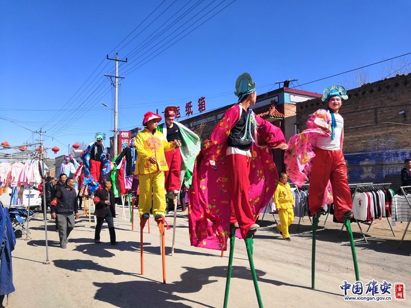 记住乡愁,留住美好,奔向未来。年轻的高跷表演者们在大街上迎着阳光大步前进。中国雄安官网记者朱伟琳 摄