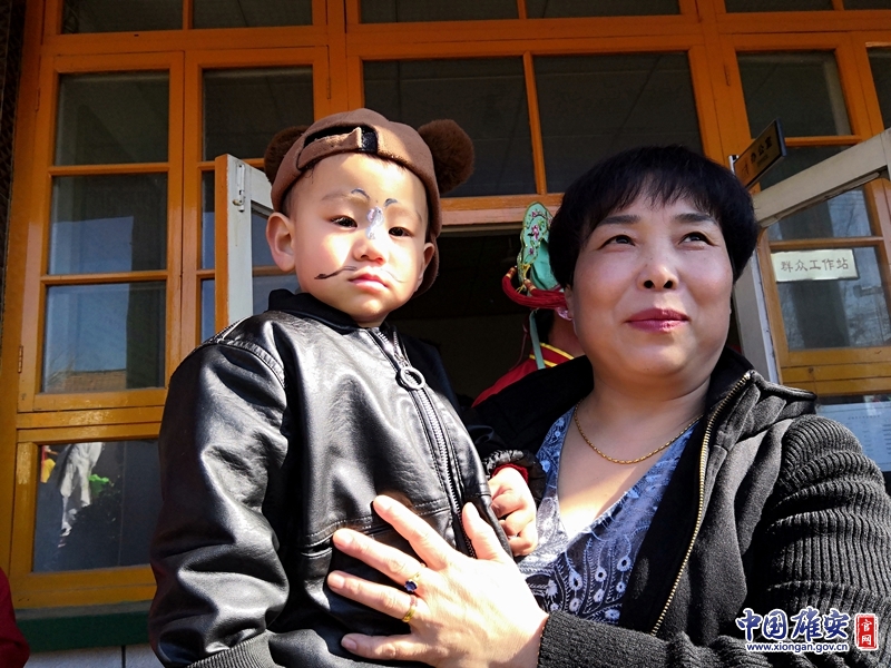 梁神堂村委会群众工作站是高跷表演者的临时化妆间,一名家长带着小朋友在这里化了个“高跷脸”。中国雄安官网记者朱伟琳 摄