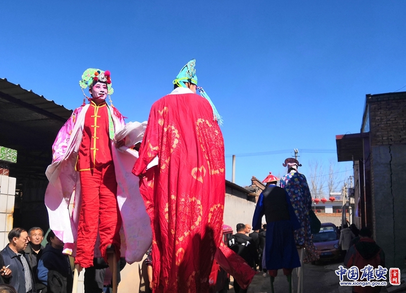40余名高跷表演者排成一队走街串巷,为村民带来节日的喜庆气氛。中国雄安官网记者朱伟琳 摄