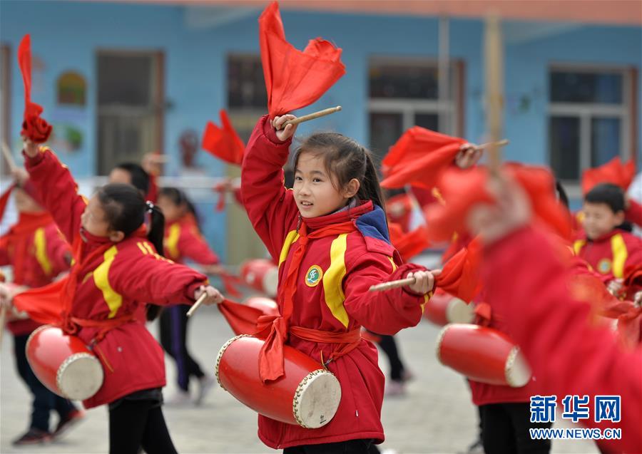 3月20日,百泉小学学生在练习打腰鼓。近年来,河北邢台经济开发区百泉小学积极开展“阳光大课间”系列活动,将传统腰鼓引入校园,开设校本课程,丰富校园文化生活。新华社记者 朱旭东 摄