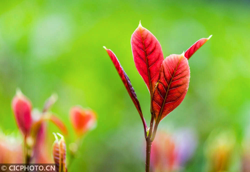 2019年2月27日在重庆市南川区生态大观园拍摄的嫩叶。CICPHOTO/瞿明斌 摄