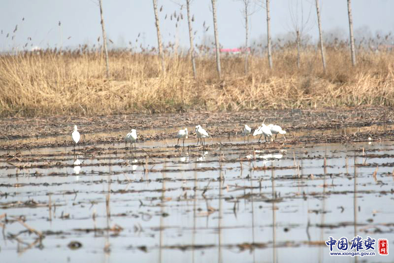 3月22日上午11时,雄安新区安新县白洋淀湿地保护区管理处工作人员在进行生态巡护过程中,在白洋淀的一处荷塘里,观测和拍摄到13只国家二级重点保护鸟类——白琵鹭。这是白洋淀湿地保护区管理处今年春季以来首次拍摄到白琵鹭,也是管理处近几年来观测和拍摄数量最多的一次。据相关调研数据显示,白琵鹭在中国存量不足1000只,十分珍贵。