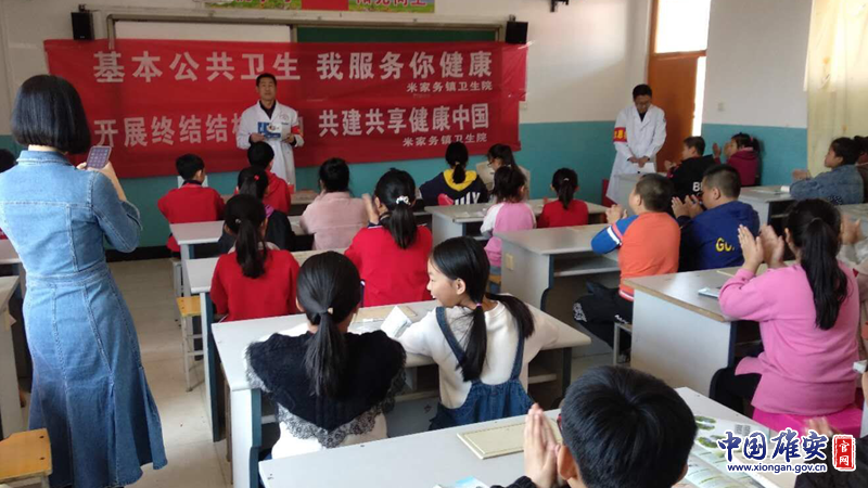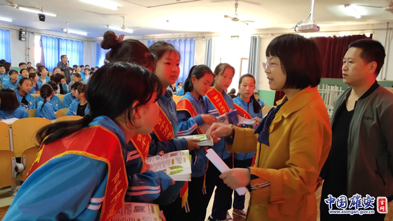 保定市疾控中心科长张雁为学生详细讲解防疫方法。雄县委宣传部供图