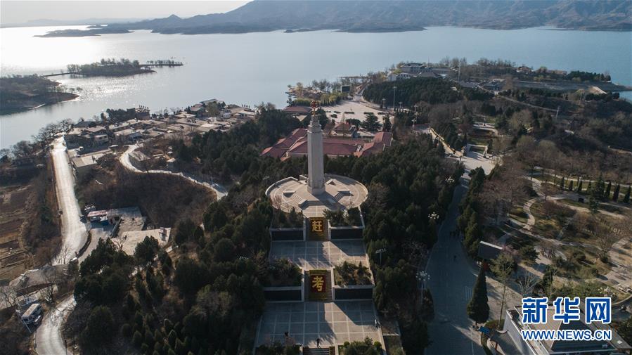3月22日在河北省石家庄市平山县航拍的西柏坡。