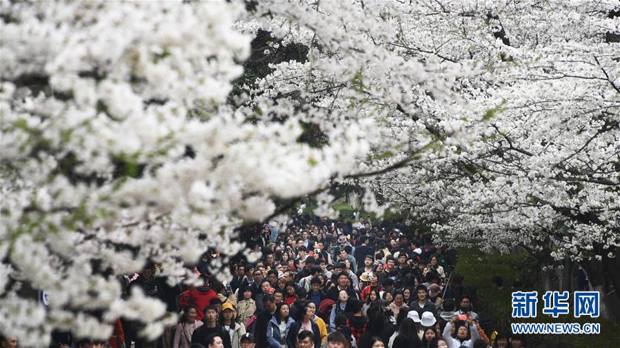 3月23日,人们在武汉大学赏花。当日,众多游客前往武汉大学欣赏樱花。新华社记者 程敏 摄