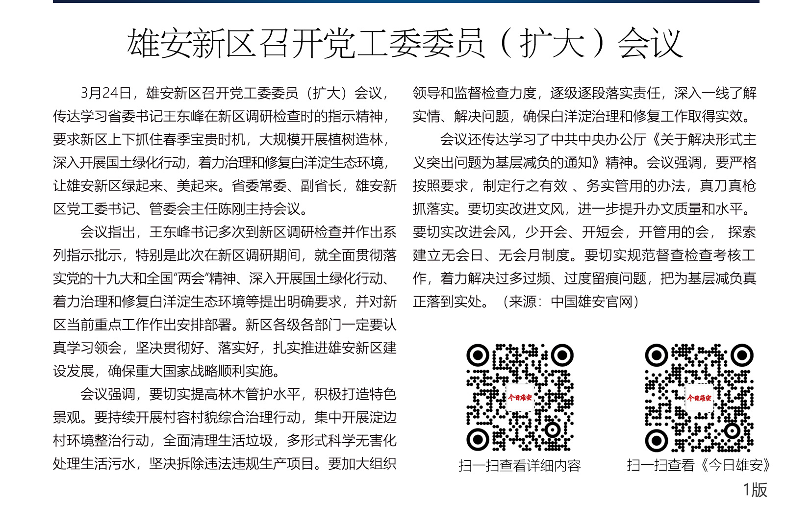 3月24日,雄安新区召开党工委委员(扩大)会议。