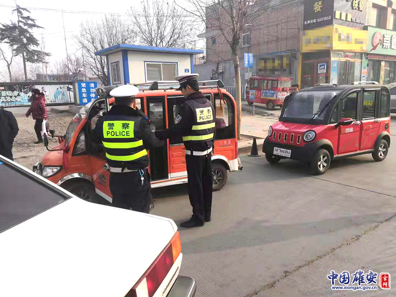 容城县交警街头排查非法营运电动三轮车。容城县委宣传部供图