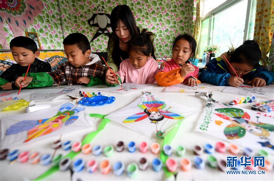3月28日,风筝制作艺人在指导孩子们制作风筝。当日,河北省廊坊市安次区调河头乡第什里风筝小镇开展“非遗风筝有传承”主题活动,邀请风筝制作艺人为孩子们普及风筝文化知识,指导孩子们制作风筝。据悉,第什里风筝是河北省非物质文化遗产,当地有200余种宫廷风筝画谱和几十种风筝口诀。新华社记者 王晓 摄