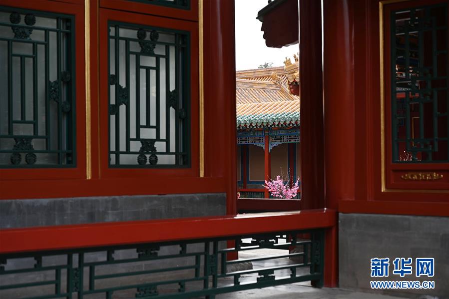 3月28日在北京故宫建福宫拍摄的鲜花。