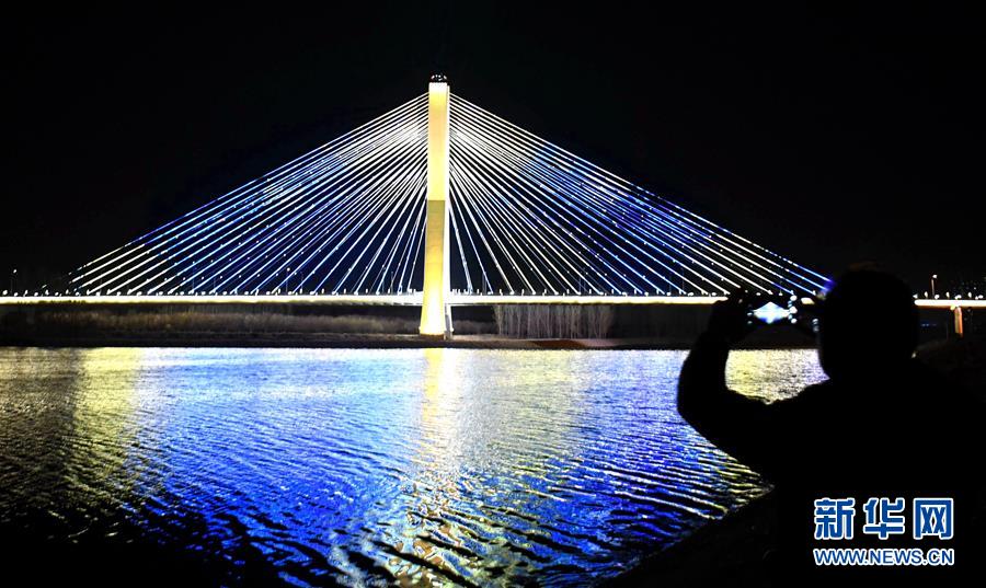 3月28日,一位市民在拍摄燕潮大桥。新华社记者 王晓 摄