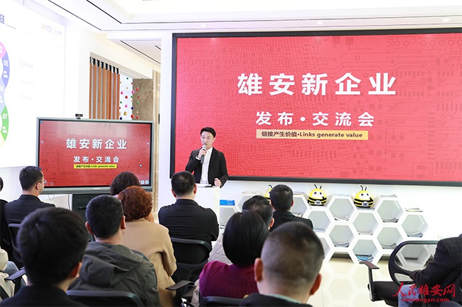图为新入驻雄安企业对企业情况进行发布。王红 摄