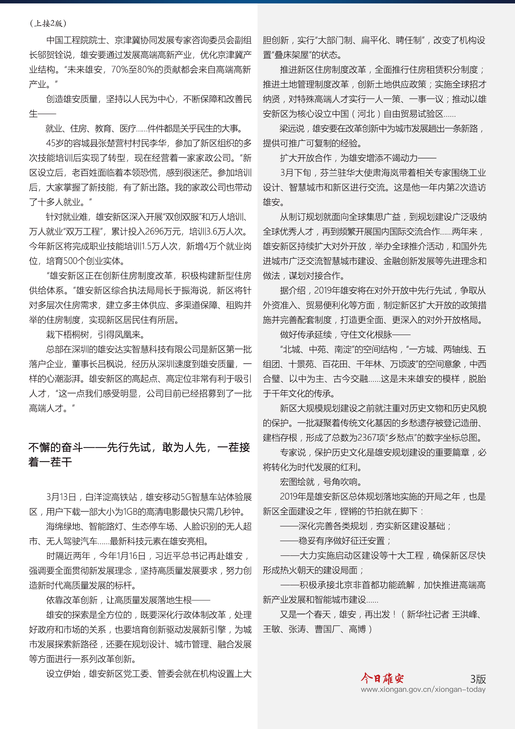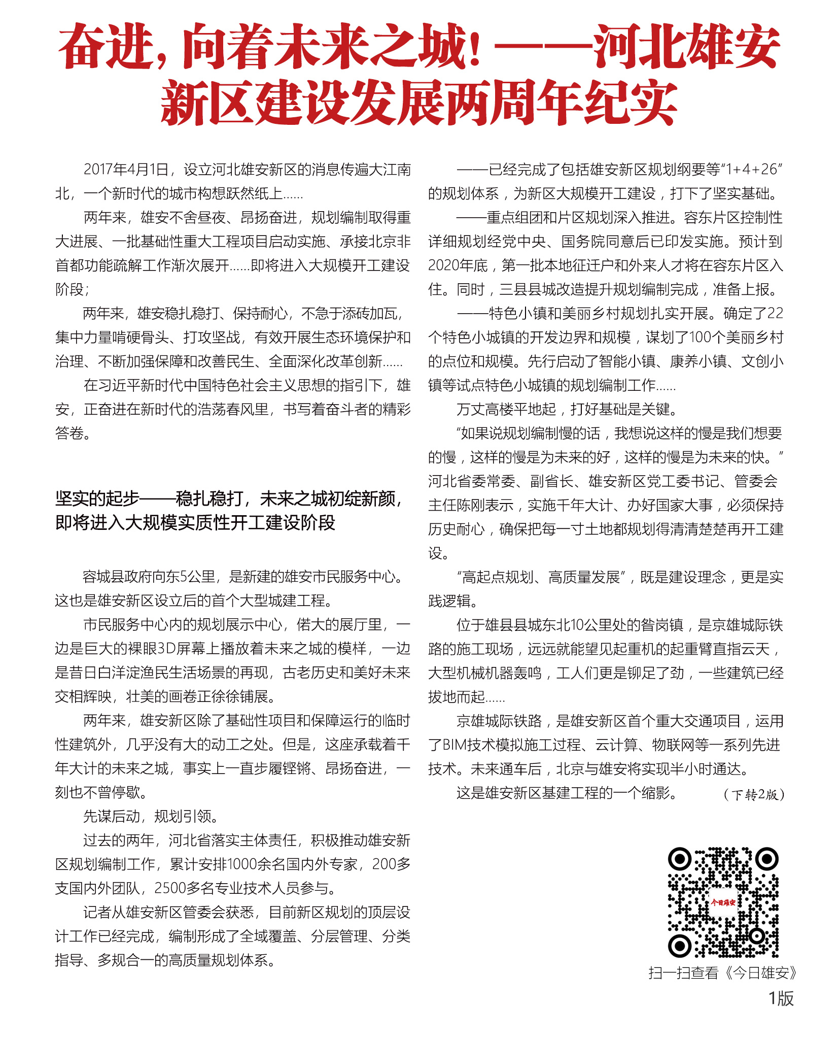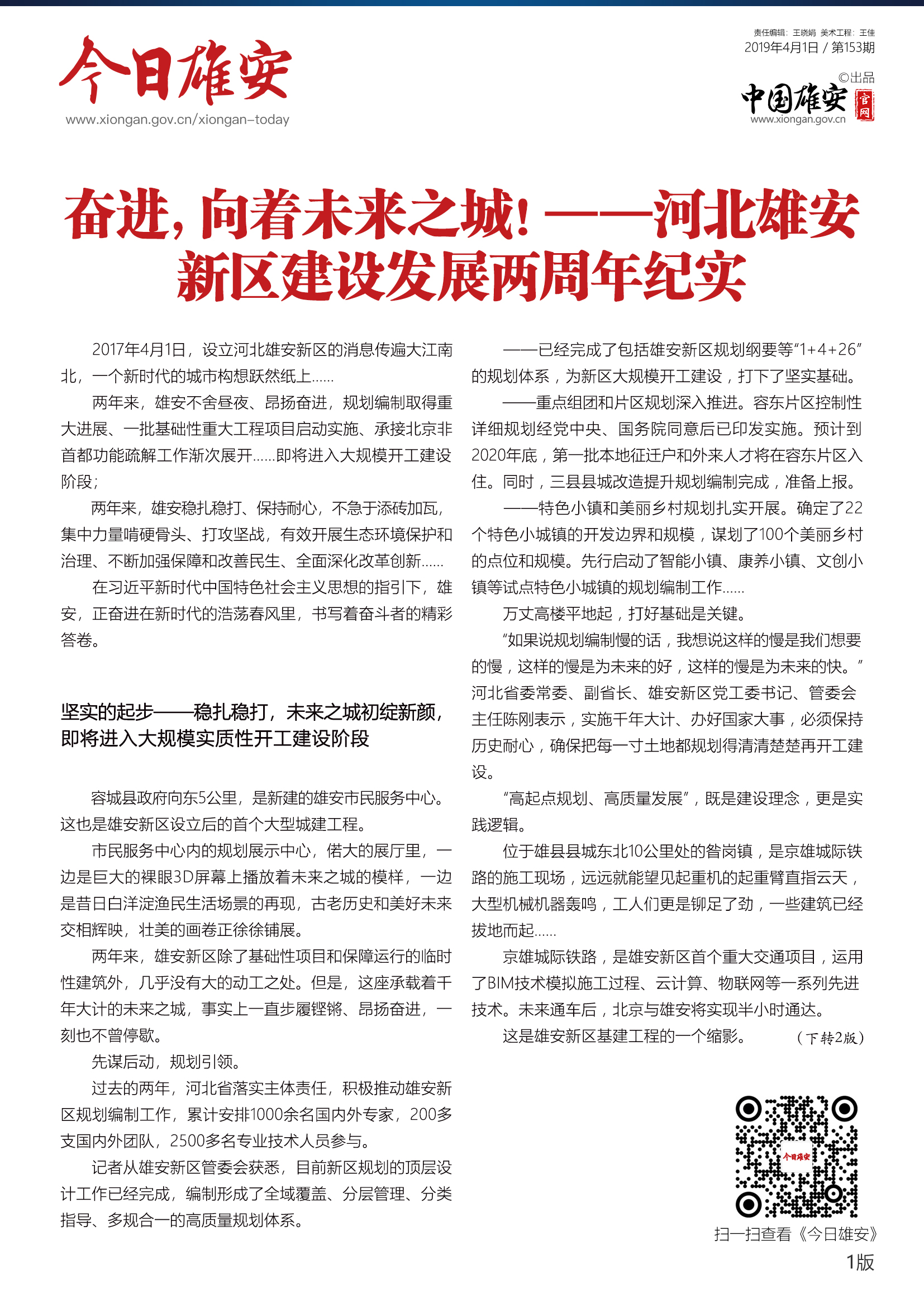 《今日雄安》 2019年4月1日 第153期 雄安新区设立两周年专刊