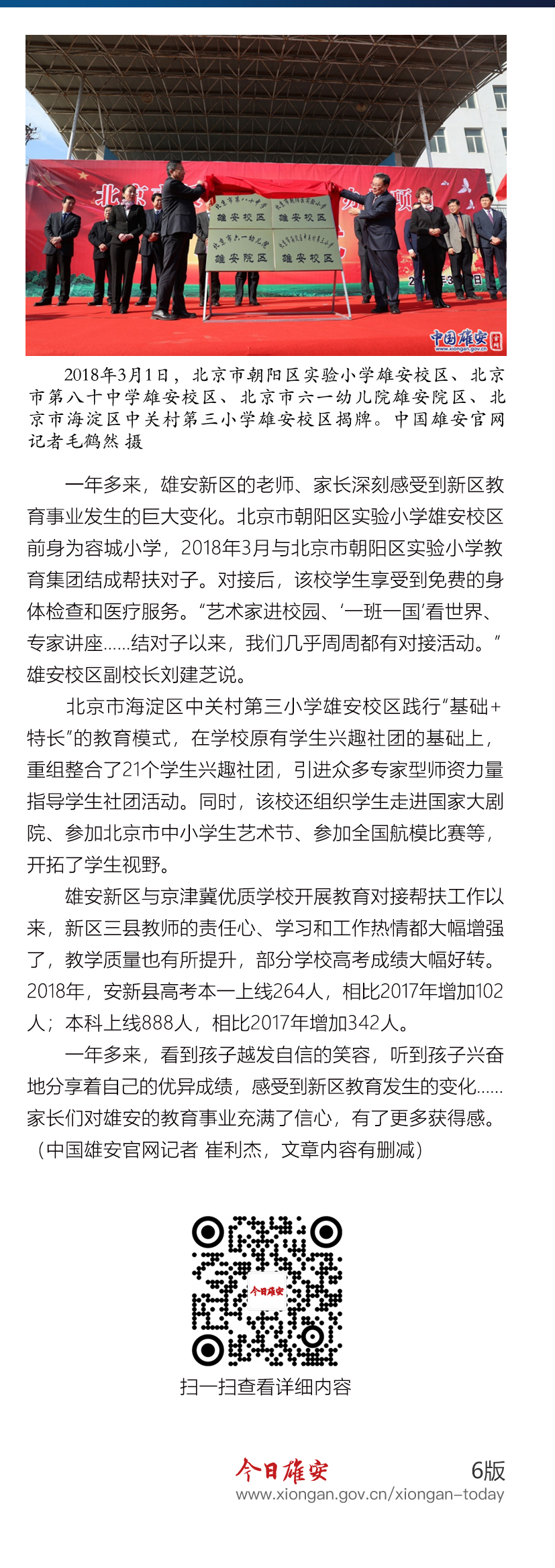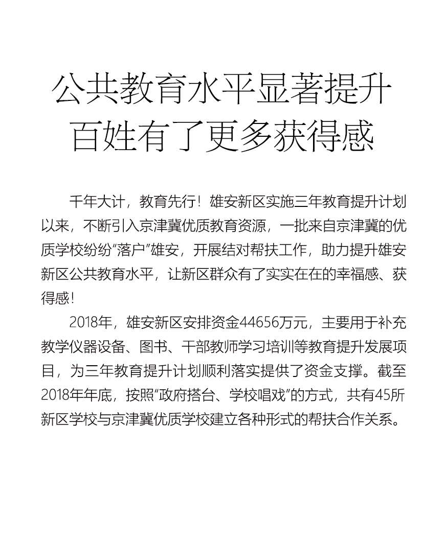 雄安新区实施三年教育提升计划以来,不断引入京津冀优质教育资源,助力提升雄安新区公共教育水平,让新区群众有了实实在在的幸福感、获得感!