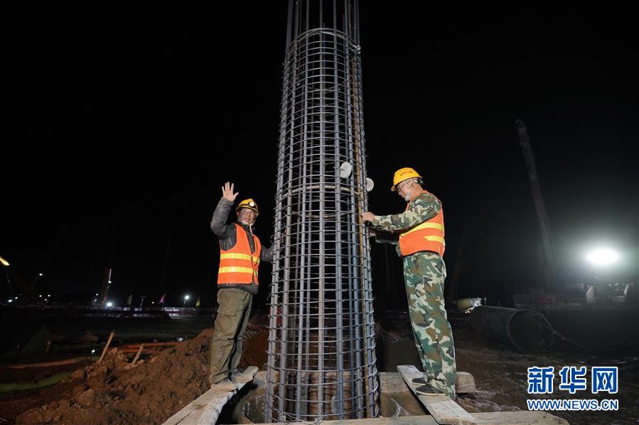 4月1日凌晨,中国铁建12局的工人在雄安高铁站工地施工。新华社记者 邢广利摄