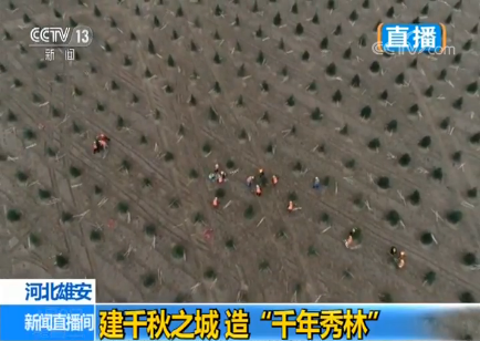 我们现在看到的,是位于河北雄安新区容城县沙河营村的造林现场,三五成群的护林工人,正在将一棵棵苗木栽种在这片希望的田野上。