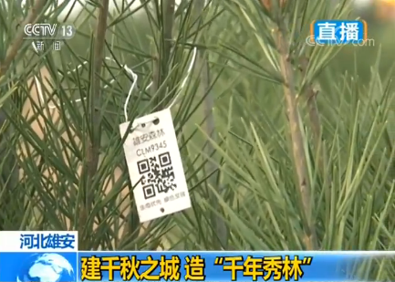 2017年11月,雄安新区“千年秀林”工程栽下了第一棵树,目前已完成造林11万亩,植树1000多万株,这里栽种的每棵树上都挂有一张“二维码”,扫描这些树木的“身份证”,什么品种、从哪来、由谁栽种一目了然。随着后期管理的深入,它里面的信息也会不断完善,除草、浇水、修剪等信息将不断加入,这样不仅便于管理,还能对树木成长的全过程进行监控。