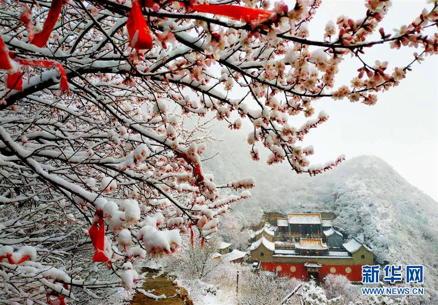 这是4月9日拍摄的张家口鸡鸣山景区雪景。当日,受较强冷空气影响,河北张家口迎来降雪。新华社发(院玉顺 摄)