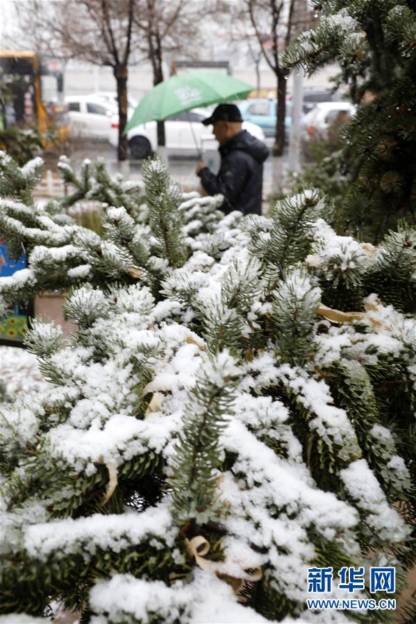 4月9日,一名行人从张家口市街头走过。当日,受较强冷空气影响,河北张家口迎来降雪。新华社发(武殿森 摄)