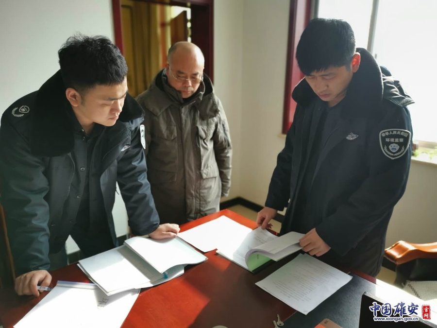 执法人员正在进行环境执法。雄安新区生态环境局供图