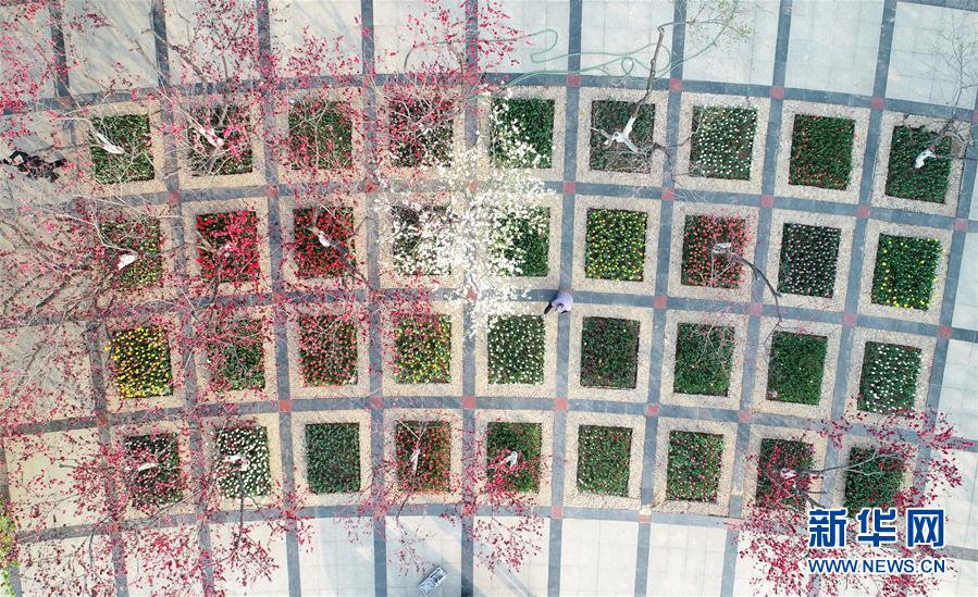 这是4月10日在河北石家庄植物园拍摄的郁金香“天使在花间”主题展览。新华社发(梁子栋 摄)