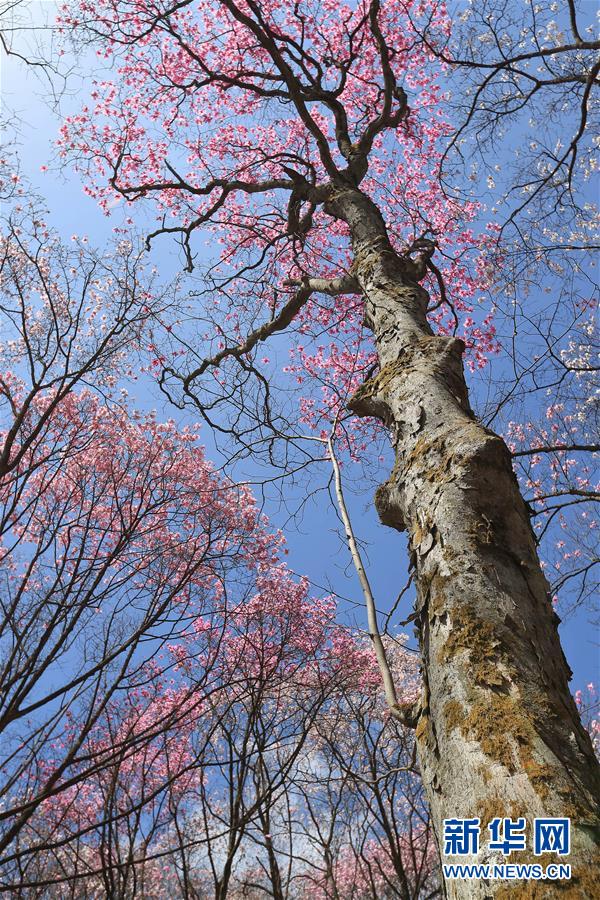 四川省江油市大康镇旱丰村吴家后山,盛开的辛夷花与错落有致的树干、蓝天构成一幅画卷(4月9日摄)。新华社记者 江宏景 摄