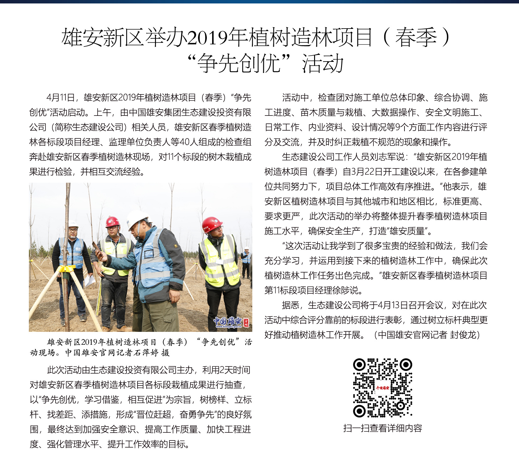 检验成果 交流经验 雄安新区举办2019年植树造林项目(春季)“争先创优”活动