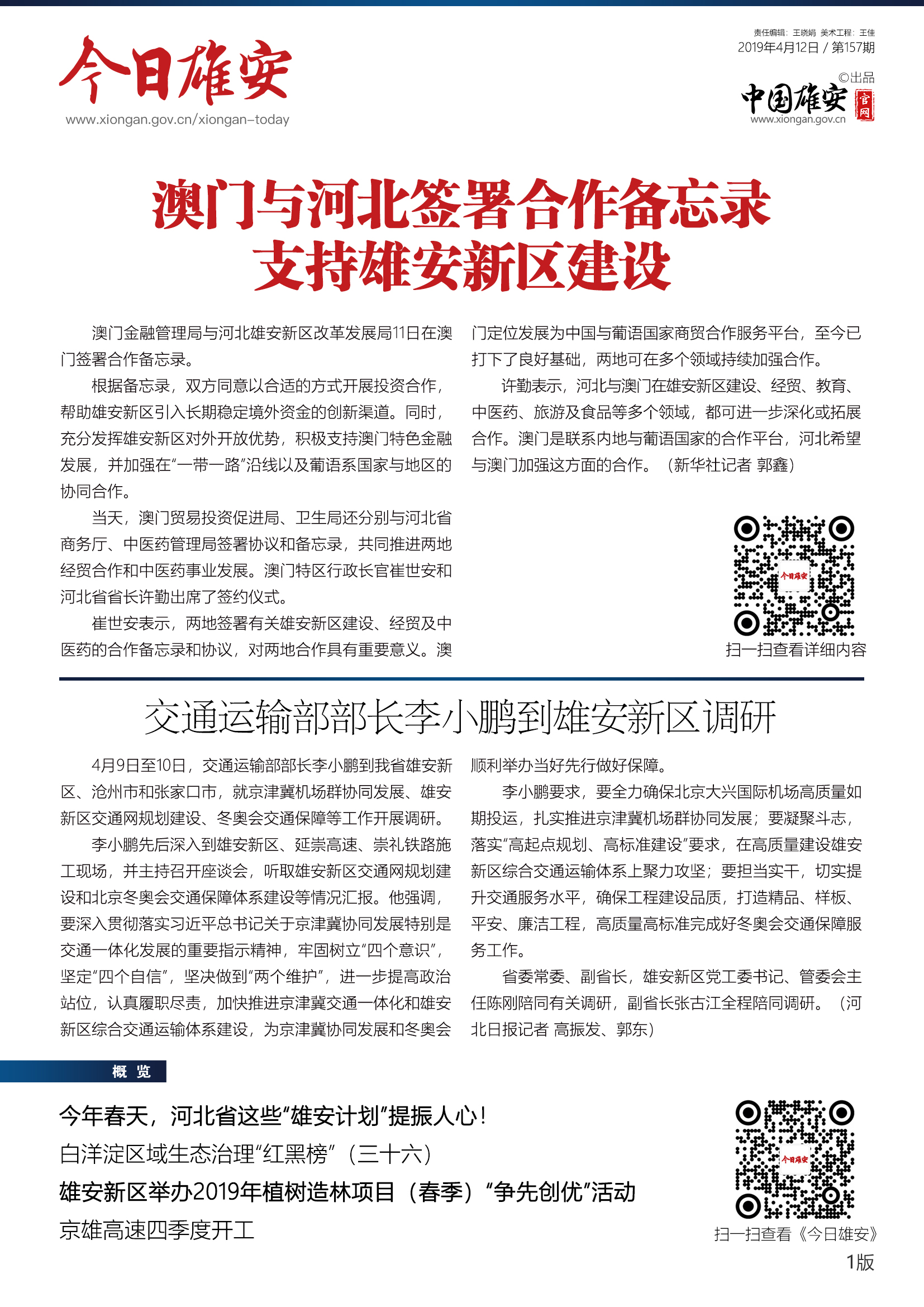 《今日雄安》 2019年4月12日 第157期