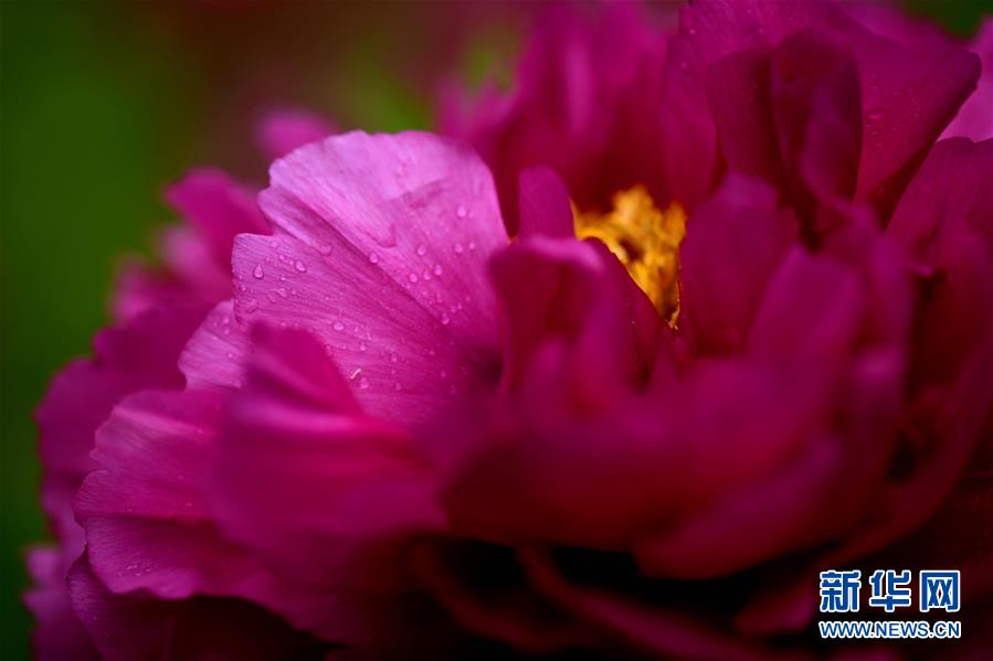 这是石家庄市正定荣国府影视基地盛开的牡丹花(4月13日摄)。时下,河北石家庄正定荣国府影视基地内的牡丹花次第开放,在春雨的滋润下显得格外晶莹剔透、美丽娇艳。新华社发(陈其保 摄)