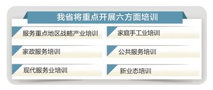 依据当地产业发展战略趋势和省委“三六八九”经济社会发展基本思路,结合农村劳动力市场和转移就业岗位需求,我省将重点开展以下六方面培训。