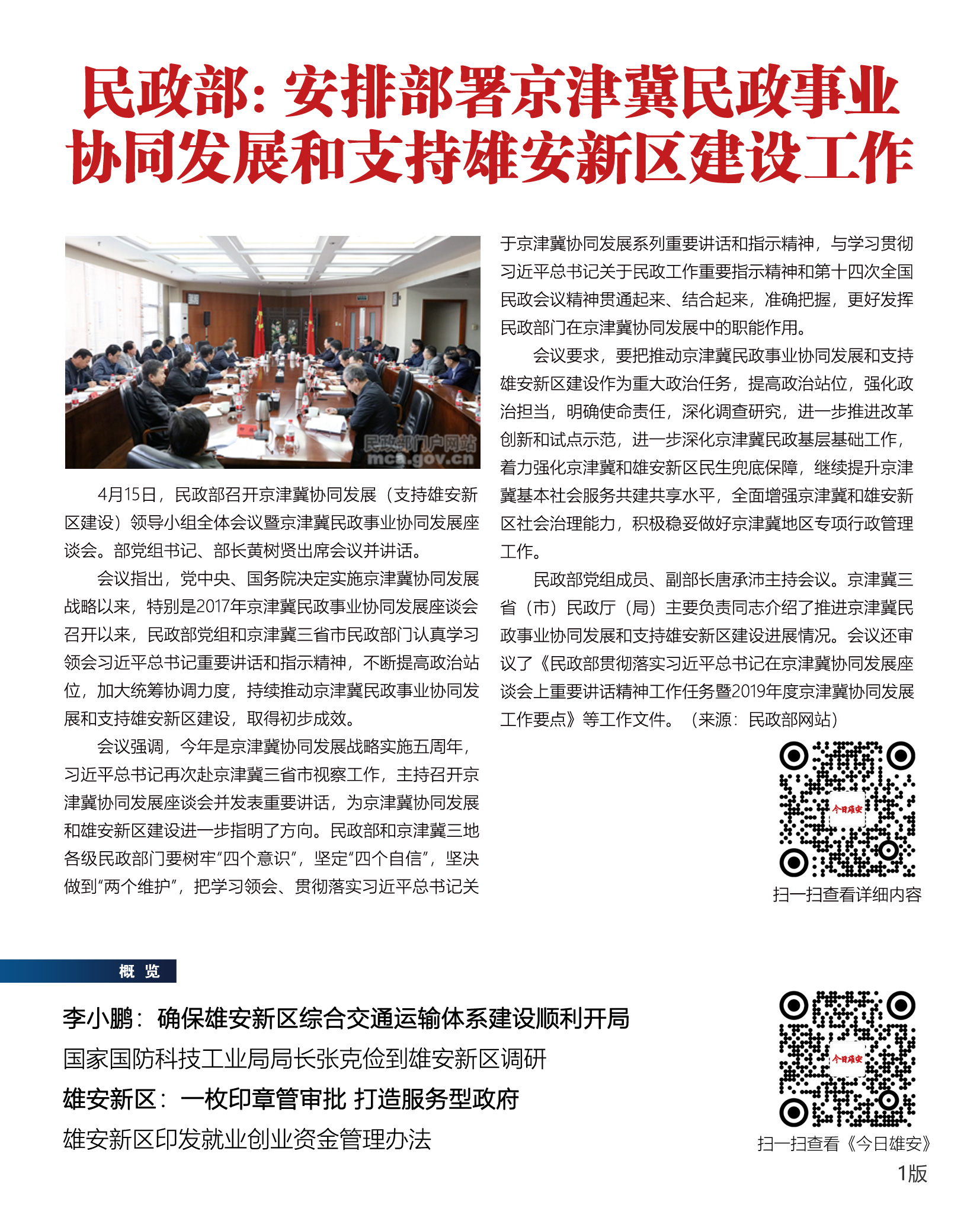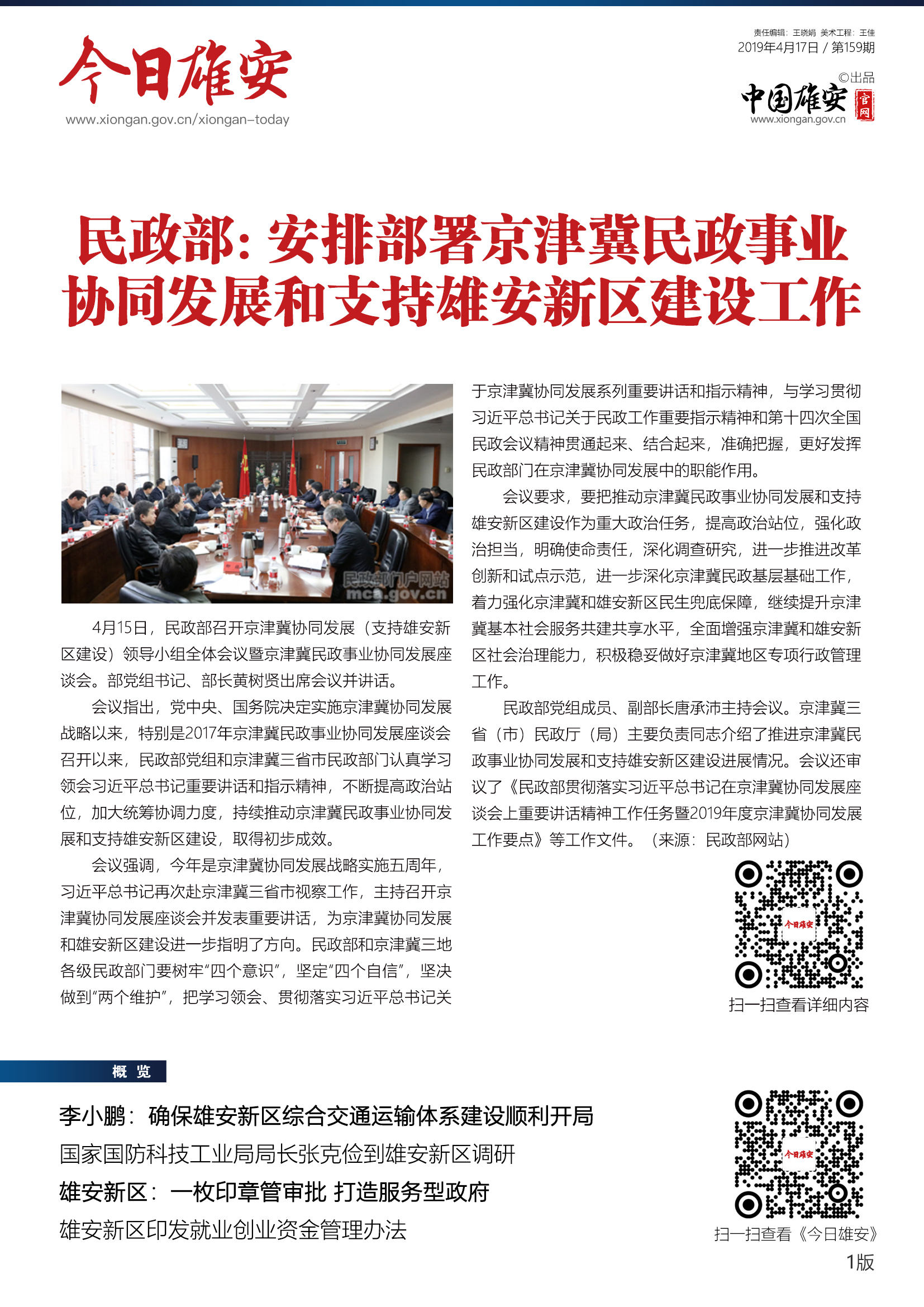 4月15日,民政部召开京津冀协同发展(支持雄安新区建设)领导小组全体会议暨京津冀民政事业协同发展座谈会。