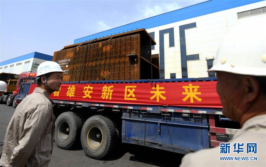 4月18日,装载雄安站站房项目首批钢构件的货车从厂区出发前往雄安。当日,北京至雄安新区城际铁路雄安站站房及相关工程主体结构工程首批钢构件从中建钢构天津有限公司发往雄安新区,用于主体结构工程建设。中建钢构天津有限公司参与了该项目6.7万吨钢结构的制造任务。新华社记者 岳月伟 摄