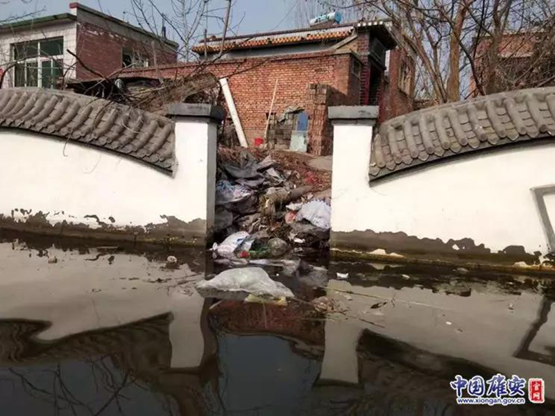 整治前,安新县端村镇大河南村等沿河村河面存在垃圾入淀现象。雄安新区生态环境局供图