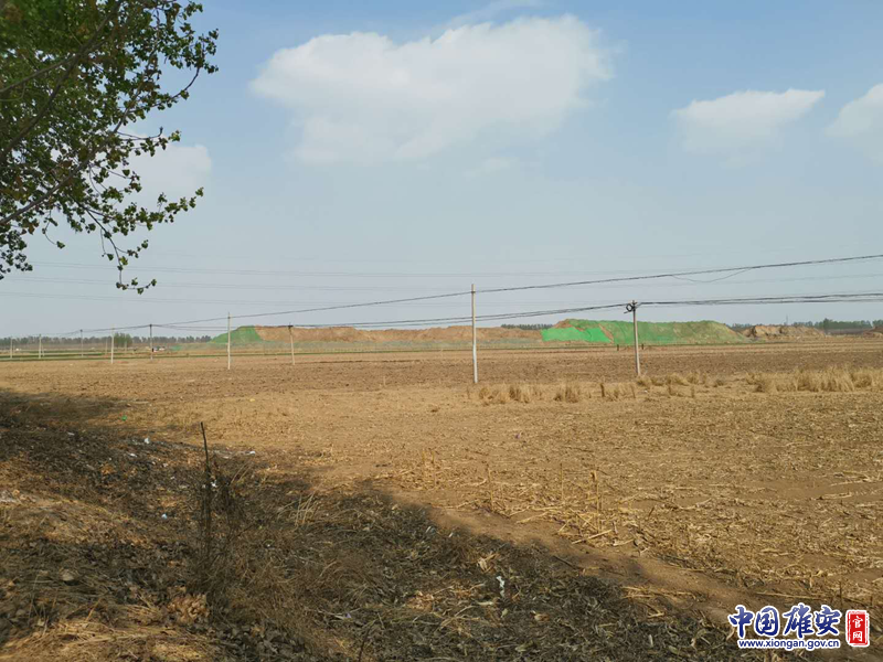 远处为中铁上海工程局倾倒的大量渣土。雄安新区生态环境局供图
