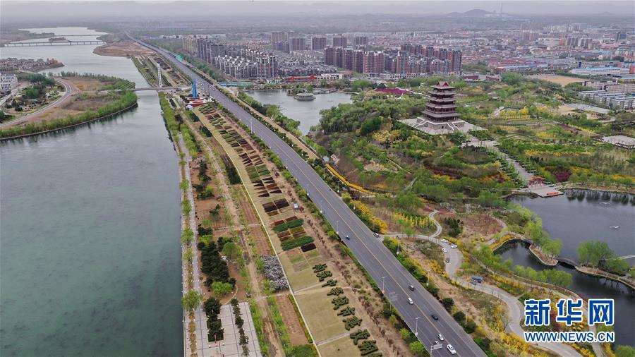 这是迁安市山水融城绿道(4月18日无人机拍摄)。近年来,河北省迁安市探索以绿道建设促进农旅融合发展之路,规划建设了总长138公里的四条生态绿道,将区域内农业园区与旅游景区串联起来,搭建起统筹城乡、产业融合、生态富民、全域旅游平台。新华社记者 牟宇 摄