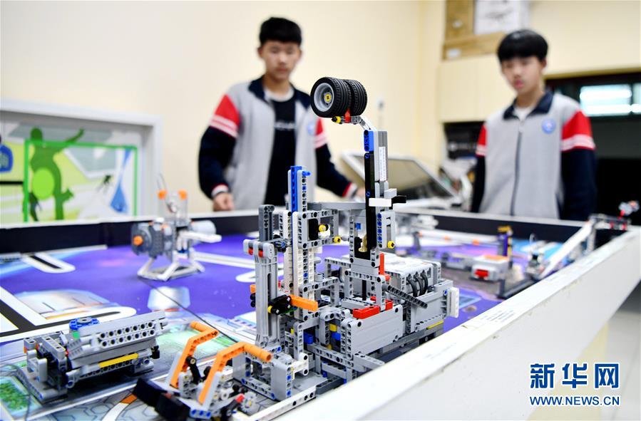4月23日,河北省廊坊市第十三中学学生在练习机器人操作。 近年来,河北省廊坊市第十三中学开办了机器人兴趣社团,并把相关知识引入课堂。学校配备了专业教师指导学生,让学生在动手操作中学习机器人基础知识,锻炼学生动手操作能力,培养学生想像力和创造力。目前,该社团开设了7个机器人项目课程,成立了14个机器人项目小组。新华社记者 王晓 摄