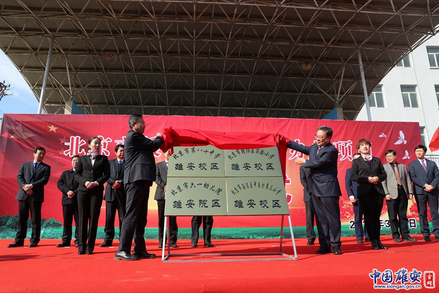 2018年3月1日,北京市朝阳区实验小学雄安校区、北京市第八十中学雄安校区、北京市六一幼儿院雄安院区、北京市海淀区中关村第三小学雄安校区揭牌。中国雄安官网记者毛鹤然 摄