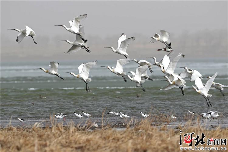 近日,还未全部解冻的张家口沽源县闪电河国家级湿地公园的草原湖、天鹅湖等湖泊,再次迎来了大批天鹅、白琵鹭、灰鹤、大雁等成群结队迁徙而来的候鸟。