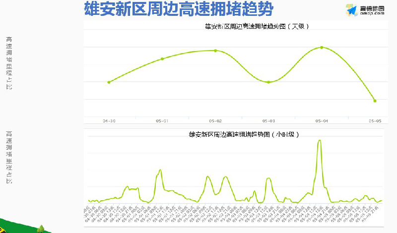 《报告》显示,预计“五一”小长假期间,雄安新区周边5月1日10点至12点为高速出程拥堵高峰;5月4日为返程拥堵高峰,15点至19点拥堵程度较高。
