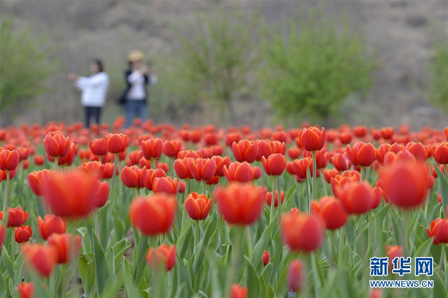 4月28日,游客在沙河市红石沟生态农场内观赏郁金香。近日,河北省沙河市红石沟生态农场内的郁金香竞相开放,吸引众多游客前来游览。新华社记者 牟宇 摄