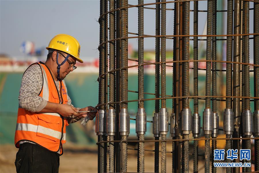 5月1日,中铁建工的建设者在雄安高铁站施工。 “五一”小长假期间,建设者仍然在雄安高铁站的建设工地上忙碌。新华社记者 邢广利 摄
