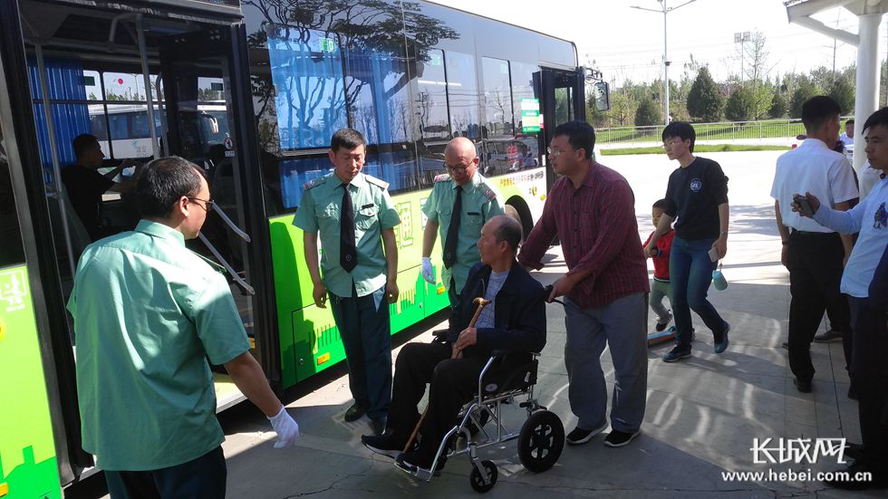 5月1日,在雄安市民服务中心P1停车场,保定公交公司工作人员为行动不便的人提供帮助。霍少轩 摄