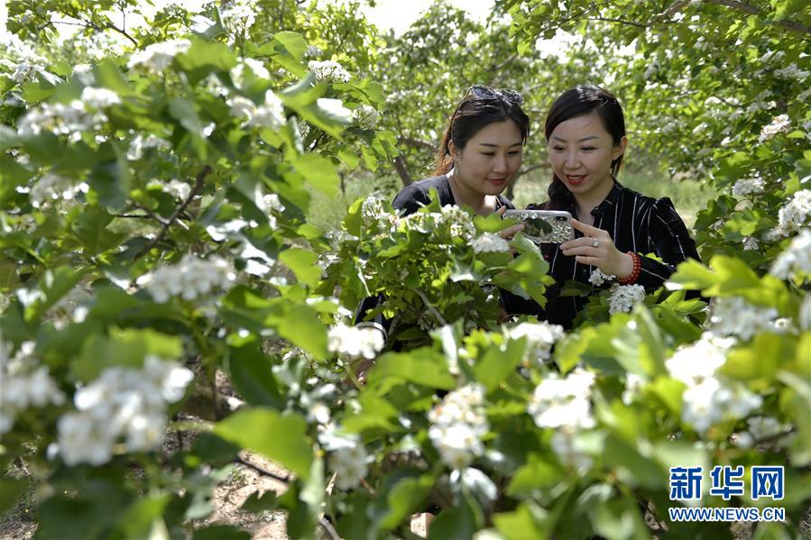 5月2日,游客在河北省清河县岳庄村山楂基地观光区内游玩。“五一”小长假期间,全国多地阳光明媚,花团锦簇,吸引人们走出家门,尽享春光。新华社记者 牟宇 摄