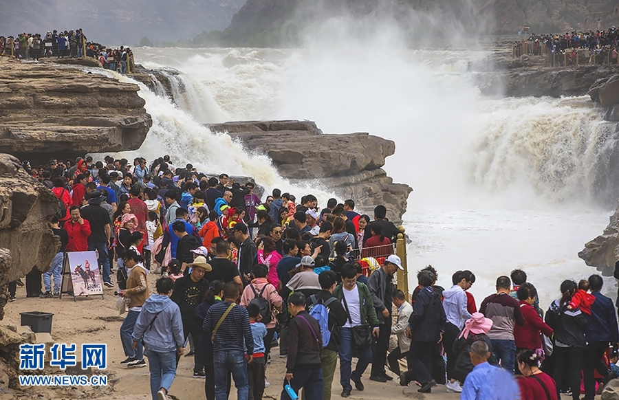 5月3日,游人在位于陕西宜川县的黄河壶口瀑布景区游览。新华社发(兰华 摄)