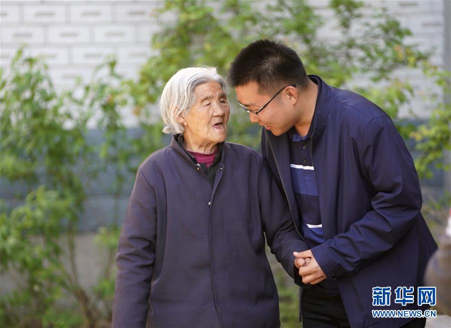鲁昊(右)在贫困户王小品家了解她的近况(4月30日摄)。新华社记者 高博 摄