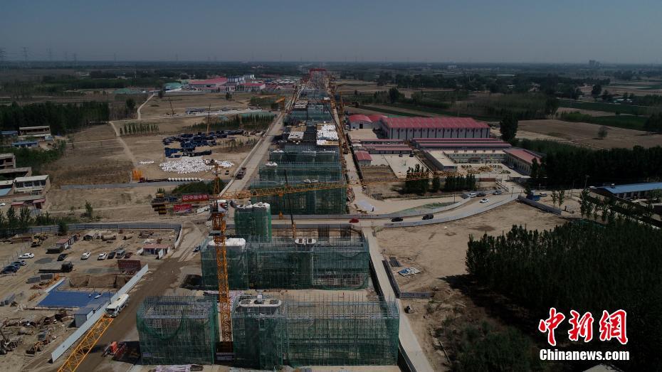 5月7日,航拍京雄城际铁路雄安站施工现场。京雄城际铁路建设工程是国家重点建设项目,连接北京市区、北京新机场和雄安新区的重要轨道交通线。该铁路起自京九铁路李营站,经北京大兴区、北京新机场、霸州市、终至雄安新区。正线全长92.4公里,全线设五座车站。建成通车后,对于促进京津冀协同发展和支撑建设雄安国家级新区具有重要意义。中新社记者 韩冰 摄
